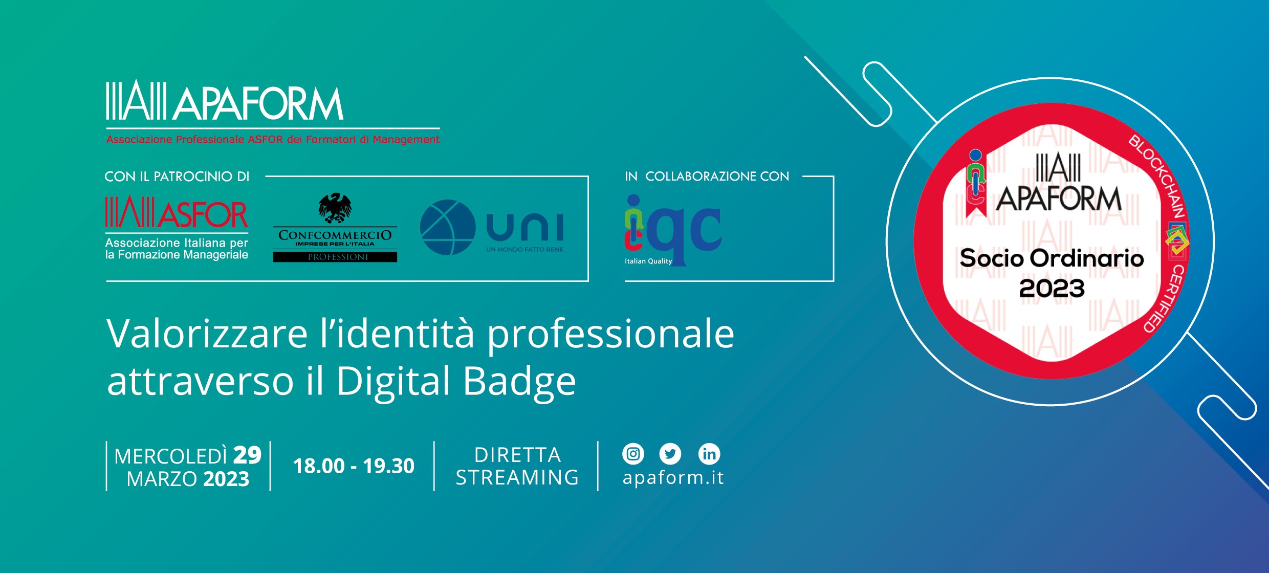 L’evento, che ha il patrocinio di ASFOR, Confcommercio professioni e UNI, si terrà dalle 18.00 alle 19.00 in diretta streaming sulla piattaforma digitale Zoom di APAFORM.Consulta il link per le informazioni, il programma dell’evento e il modulo per la registrazione